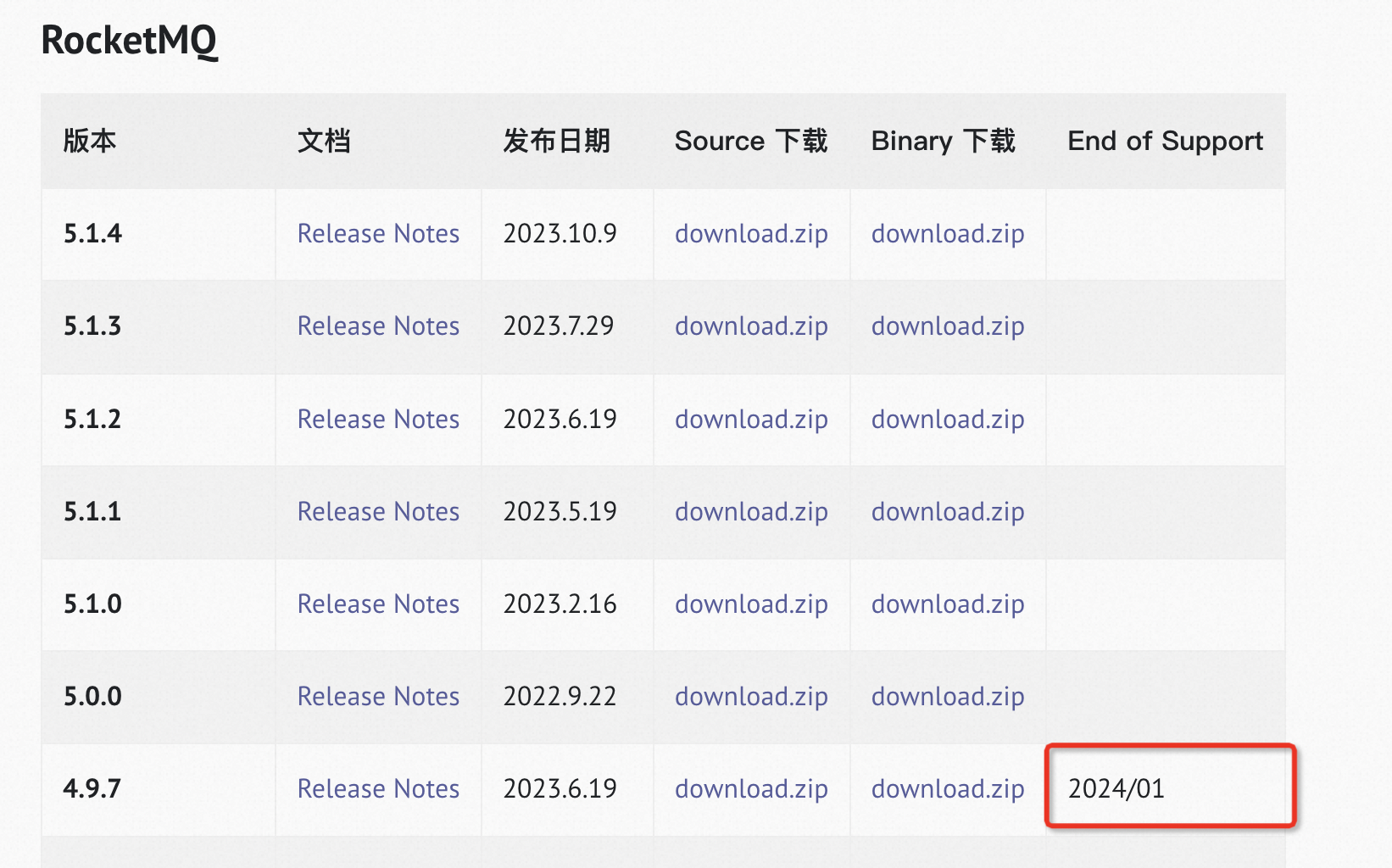 咨询个RocketMQ版本维护的问题,目前生产使用的是4.x的最新版4.9.7,想问下4.x版本的更新维护截止日期是什么时候?现在是否有必要一定升级到5.x版本?能提供下原始的网址链接吗?