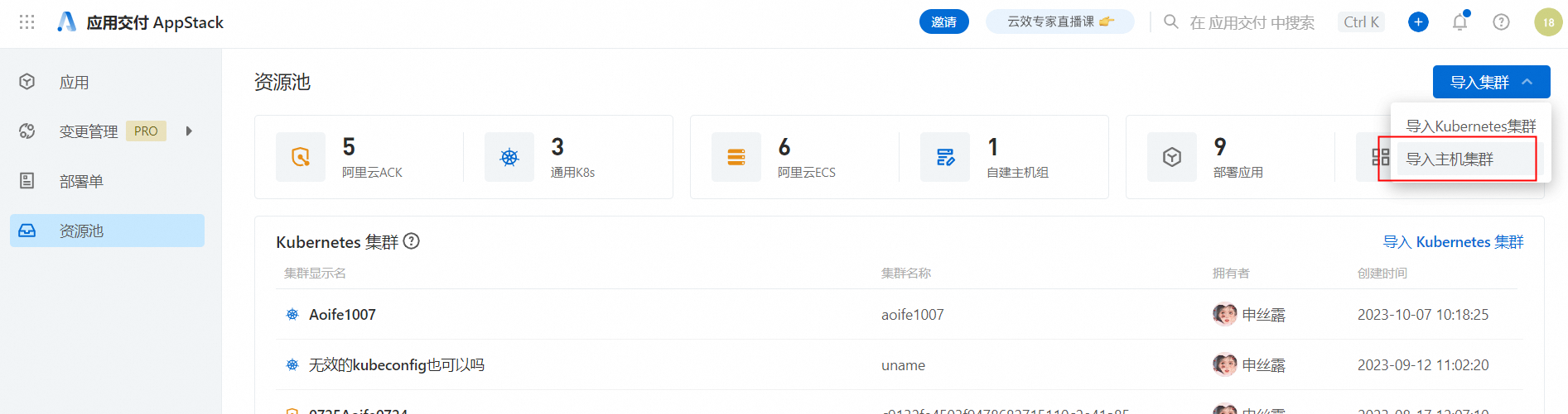 在云效想导入ECS主机到资源池,但是找不到导入的入口,怎么办?